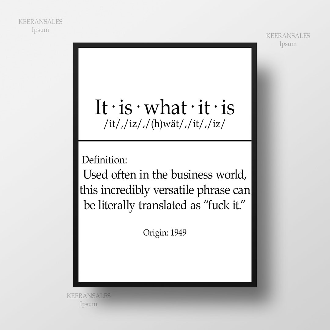 . In short: "It Is What It Is" is a statement of acceptance and realism about a given situation. Are you looking for an English phrase expressing a kind of resigned acceptance? Then "it is what it is" might be just the one for you! Not only does this expression capture a sense of inevitability, but its interesting origin story points to how language changes and evolves.